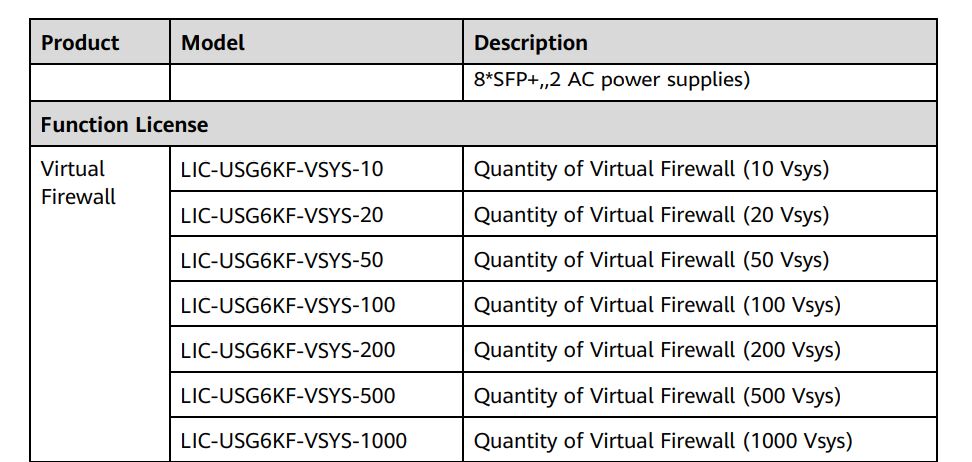 Προδιαγραφές Huawei Virtual Firewall Function LIC-USG6KF-VSYS |